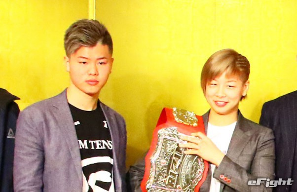 今年1月1日のRIZIN一夜明け会見での那須川(左)と浅倉(右)