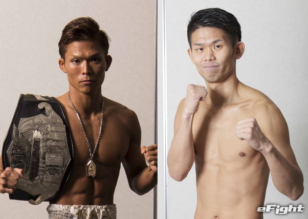 ライト級では王者・NAOKI(左)が2階級制覇狙いの鈴木(右)を相手に初防衛