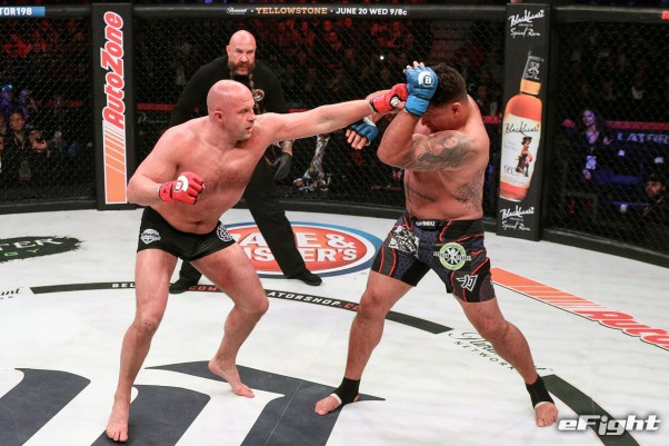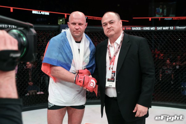 Bellator MMAのコーカー代表(右)と、同団体に参戦中の元PRIDEヘビー級王者ヒョードル(左)