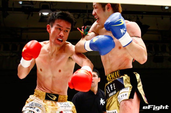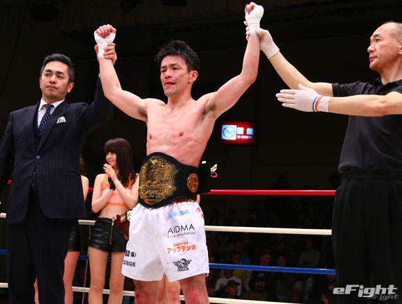 2017年11月、久保賢司(右)を相手に2度目の防衛に成功。これ以来、試合は行っていない