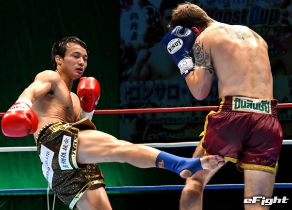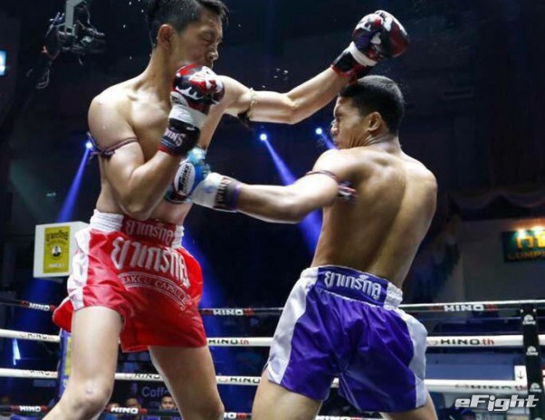 ルンピニー復帰戦となる志朗(左)とTVマッチメイン常連のモーラタナパヌ(右)の一戦
