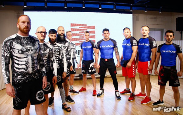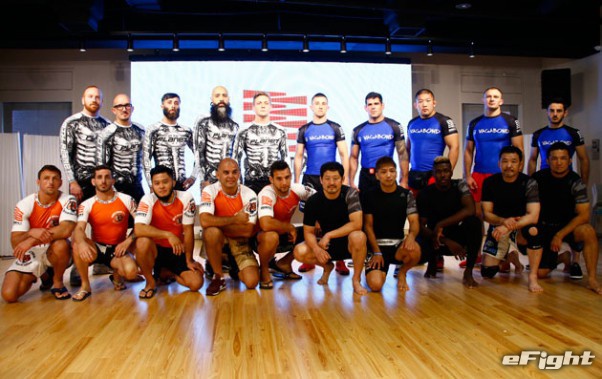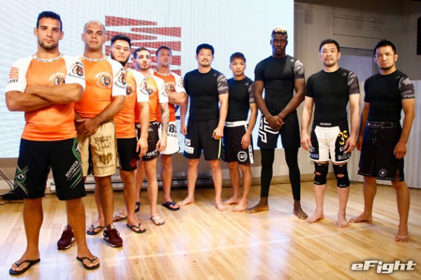 「TEAM Tiger Muay Thai」(左の5人)vs「TEAM Reebok」(右の5人)