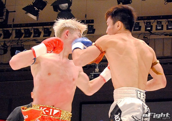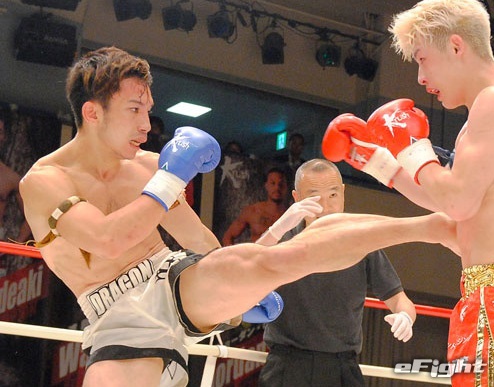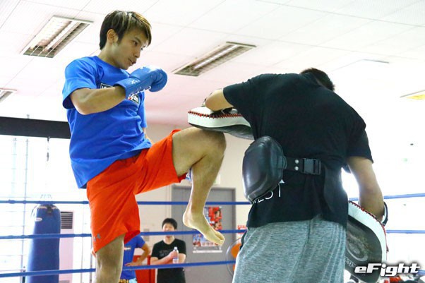 公開練習で飛びヒザ蹴りを放つ佐々木