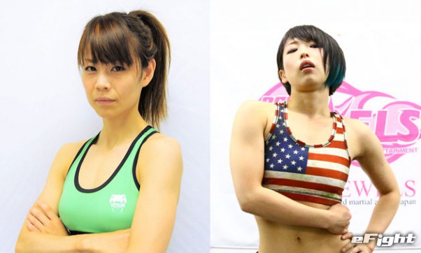エイベックス所属のボディーメイクトレーナー“女ランボー”こと武井(左)がMMAデビュー。まど花改めマドレーヌ(右)と対戦