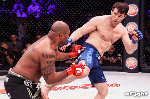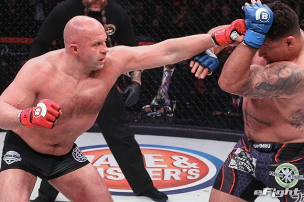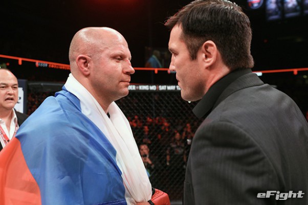 ヘビー級王座決定トーナメントの準決勝で激突するヒョードル(左)とソネン(右)