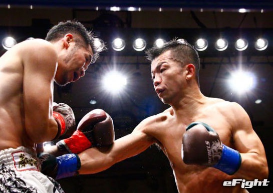 今年2月、KING強介(右)と打ち合う炎出丸(左)