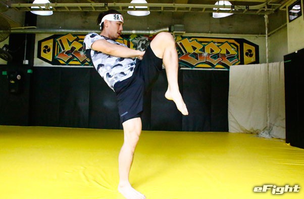 ハイキックを繰り出す矢地。ヴァンダレイ・シウバからの刺客をメインで迎え撃つ