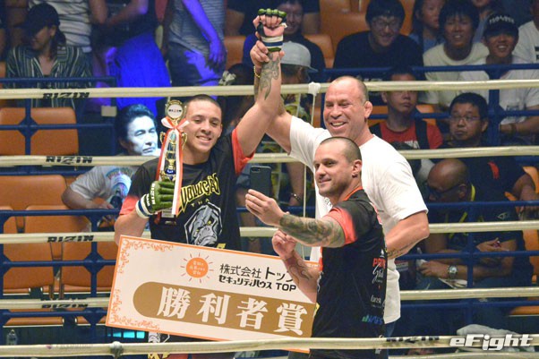 RIZINで5連勝していた矢地(左)をKOで下したグスタボ(右)