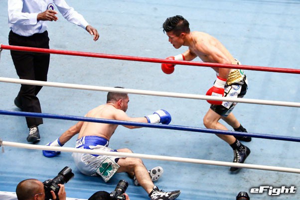 今年5月、世界前哨戦でダウンを奪う亀田和毅