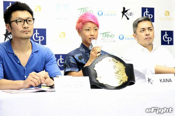 K-1初の女子トーナメント開催を熱望した、Krush女王KANA(中央)