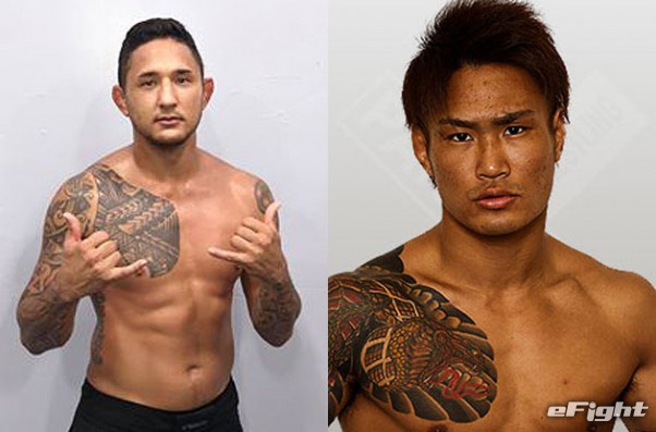 矢地をKOした強打者ミセッチが初来日、まさかりパンチの金太郎(右)とKO必至の激突