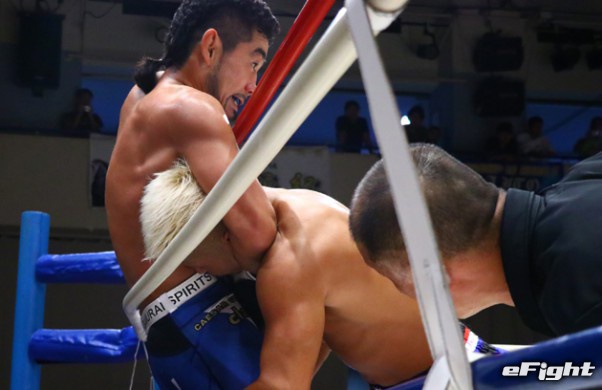 スタンディングフロントチョークでKO負けした奥田