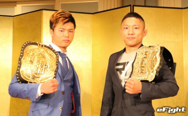 那須川(左)vs堀口(右)は3分3Rの延長1Rあり、通常のボクシンググローブよりもあんこ部分が薄いグローブで行われる