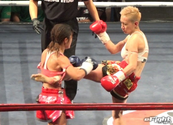 2年前の試合でCOMACHIにミドルキックを放つLittle Tiger