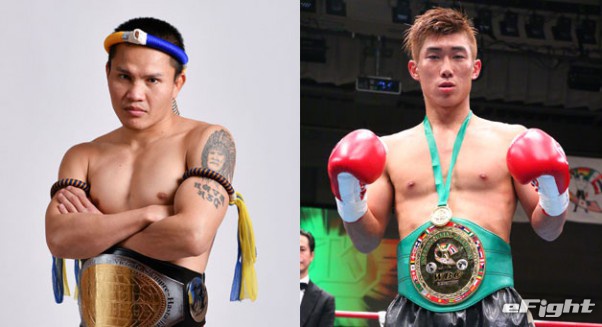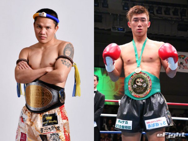 K-1で勝利を収めたスアレック(左)が、WBCムエタイ・インター王者の宮越(右)を迎え撃つ