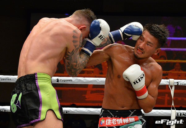 2階級制覇を狙う白鳥(左)が、ライト級トップの一人である北井(右)と対戦