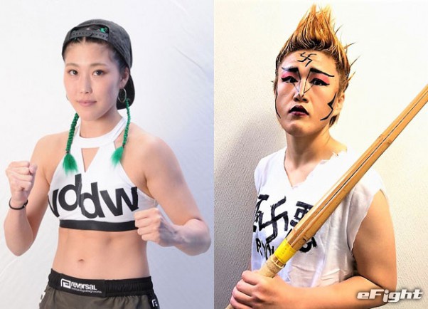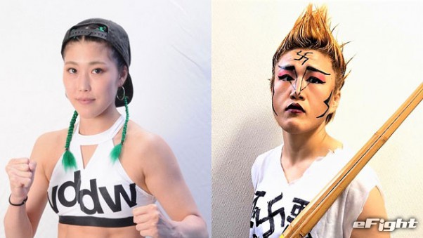 渡辺華奈をパンチでピンチに追い込んだ赤林檎(左)がジュエルス初参戦。キャラ変したダンプリョーコ(右)と対戦する