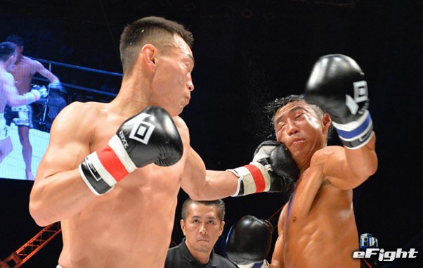 左フックでKOし、初代王者となった森井