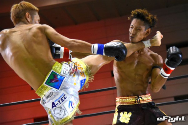 KNOCK OUTの試合で高橋(右)にハイキックをさく裂させる瀧澤