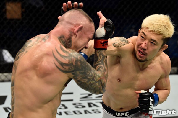 強烈な打撃で北岡悟、菊野克紀、今成正和らから勝利を収めている廣田(右)