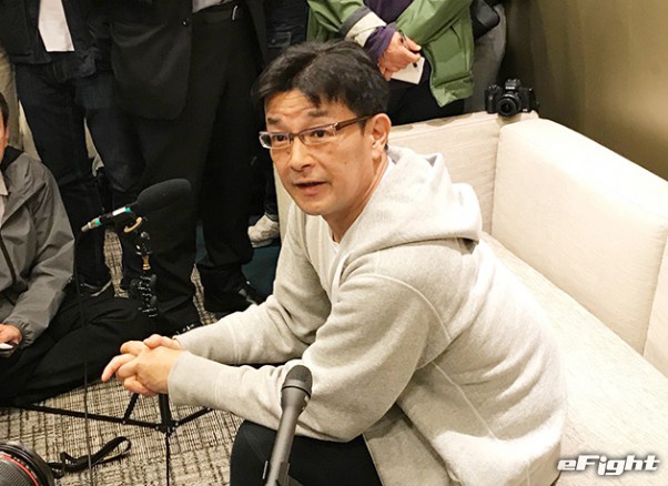 帰国後、空港で会見に応じた榊原委員長