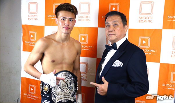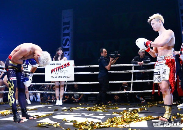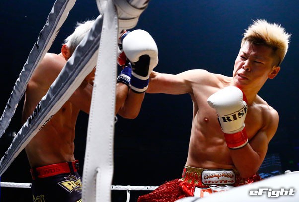内藤をパンチ連打でロープに釘付けにする那須川