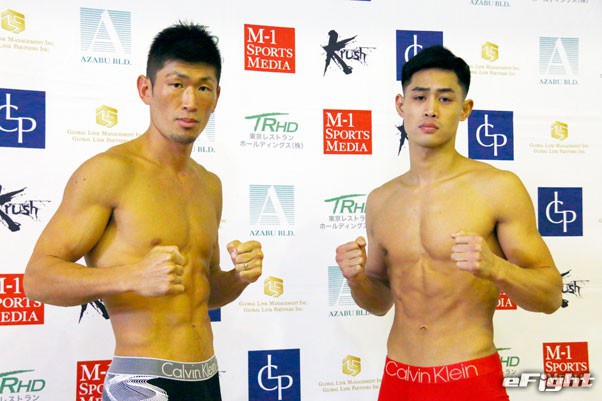 王座返り咲きを目指す牧平(左)に挑むは、1勝(1KO)5敗の戦績の渡邊(右)