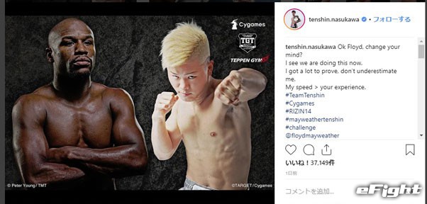 那須川がSNSに投稿した画像とメイウェザーへのメッセージ