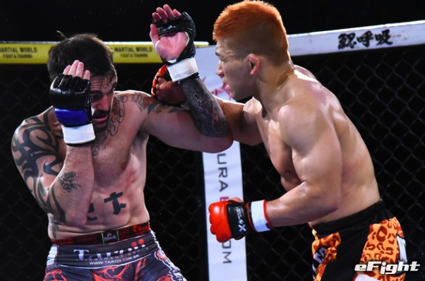 ロシア・パンクラチオン協会からの刺客ソリホン(右)を迎え撃つアキラ(左)