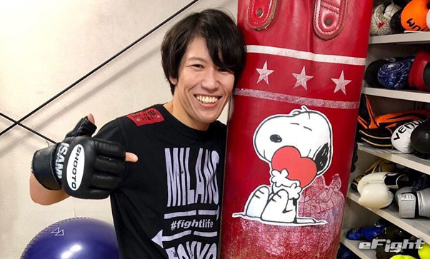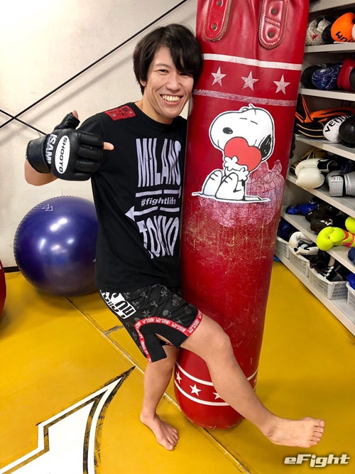 サンドバッグにはスヌーピーの絵。さりげなく前澤を挑発する黒部