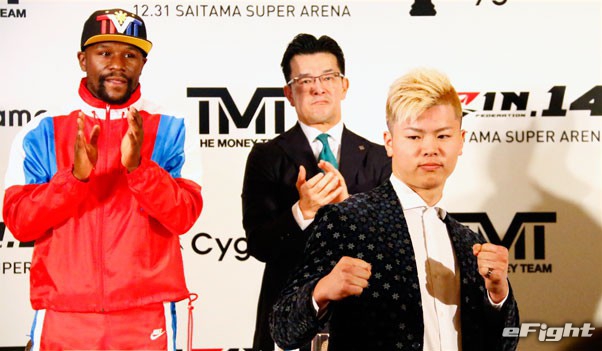 メイウェザー(左)vs那須川天心(右)のアメリカでのプロモーションが実現する