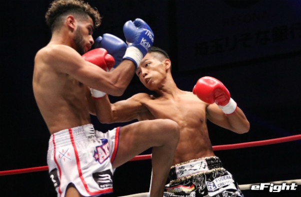 武居が元ラジャ王者のムエタイ戦士ヨーブアデーン(パネルの人物)と対戦