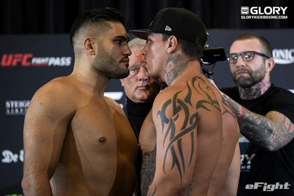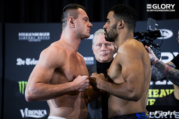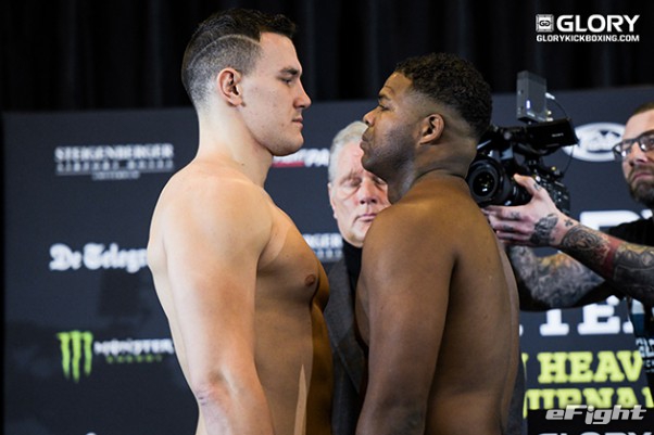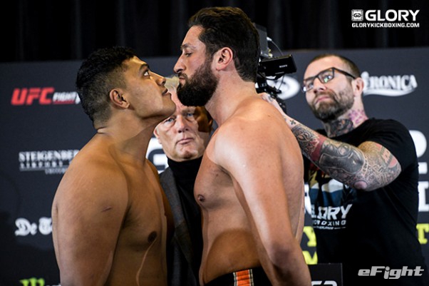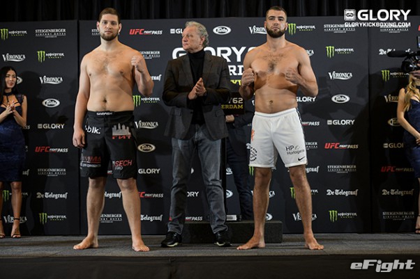 トップランカーのアデグバイ(右)も対戦相手のウルゾセク(左)と睨み合い