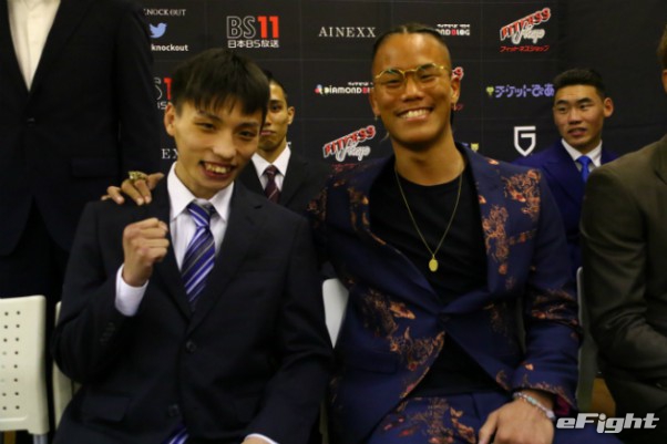 山口侑馬(右)のまさかの無茶振り洗礼を受けた大崎(左)