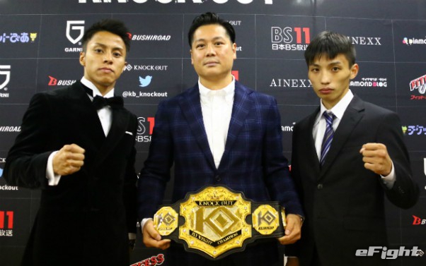 メインイベント、KING OF KNOCK OUT初代フライ級王座決定トーナメント決勝戦で対戦する石井一成(左)と大崎一貴(右)