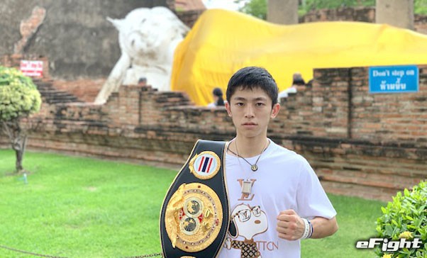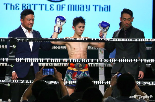 17歳で日本人7人目のラジャダムナン王者となった名高(中央)。右が中川会長