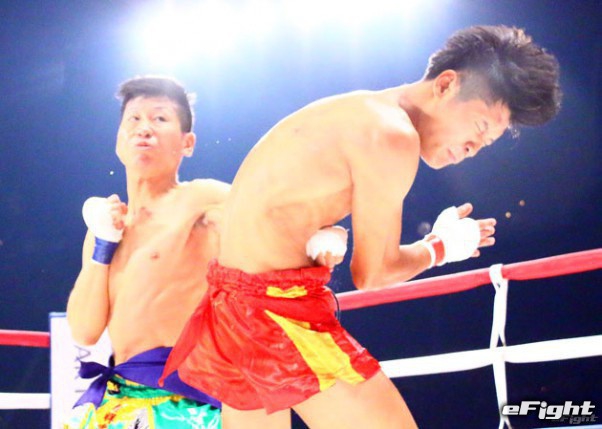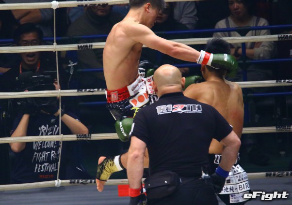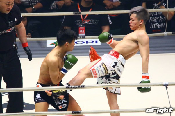 バンテージのみの強烈な左ボディでKO勝ちした浜本