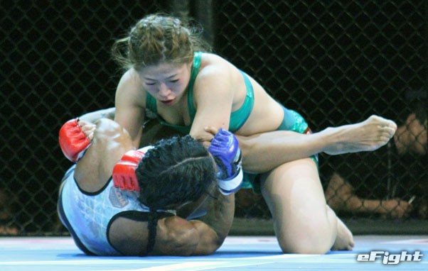 寝技で上になる場面もあった鈴木(上)だが、マウントからのパウンドとヒジ打ちで文字通りボコボコにされた