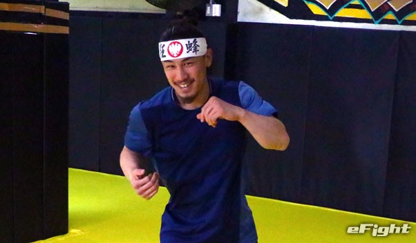 笑顔を浮かべながらシャドーボクシングをする矢地は「絶好調」