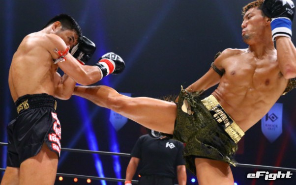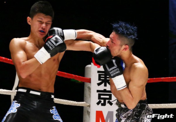 シュートボクシングで村田(左)に惜敗した前口(右)