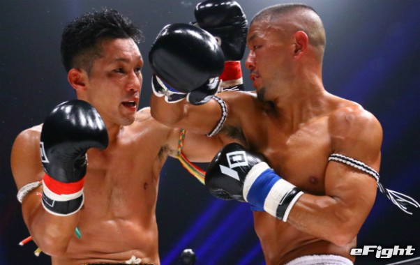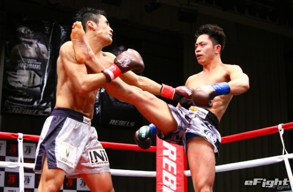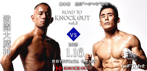KNOCK OUTのレギュラーメンバー水落(左)と打ち合う橋本(右)