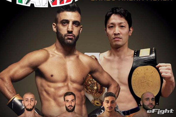 15年2月のMA日本タイトルマッチ。為房(左)が剛腕モハン・ドラゴン(右)からダウンを奪って判定勝利し、初防衛に成功した