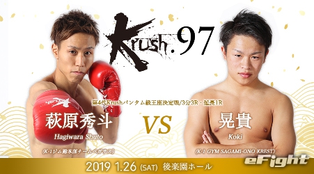 第4代Krushバンタム級王座決定戦で対戦する萩原秀斗(左)と晃貴(右)