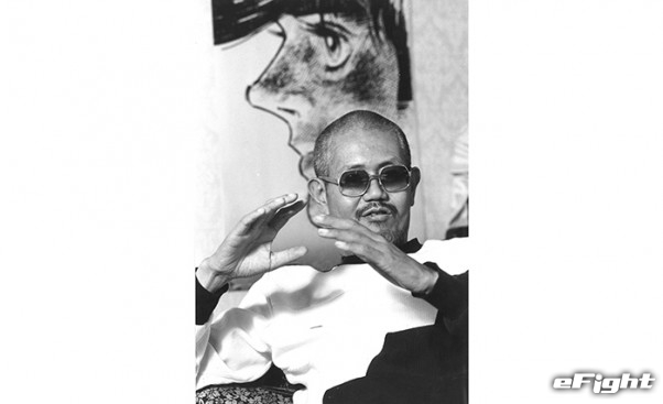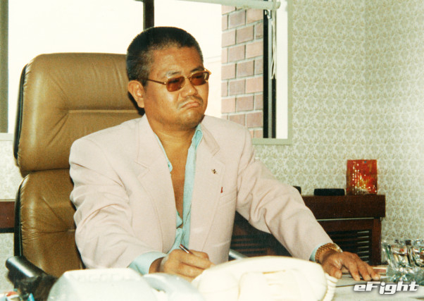 あしたのジョーのパネルの前で語る在りし日の梶原一騎氏 (c)A.Tプロダクツ