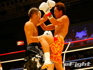 現在K-1で活躍する小宮山(右)の12連勝をストップした一刀(左)
