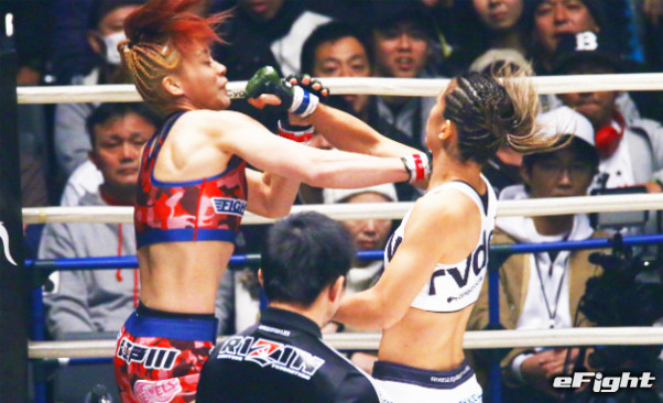 大みそかRIZINで杉山しずか(右)を11秒でKOした渡辺