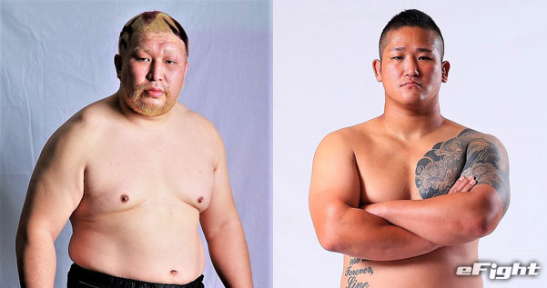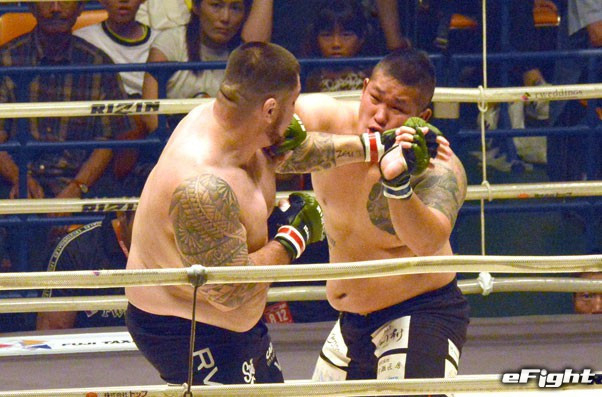 RIZINでマルティネス(左)と真正面からの打ち合いを挑んだハント(右)