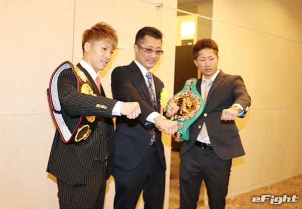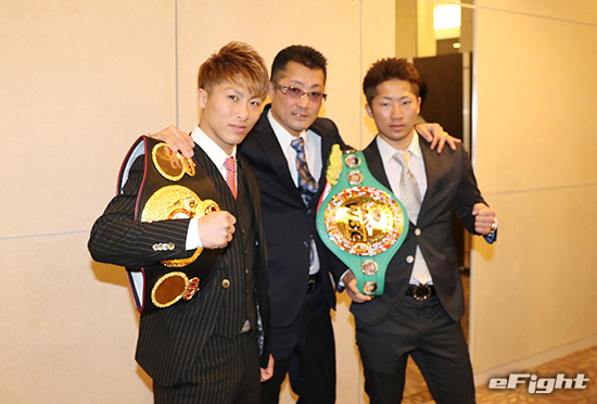 井上一家、親子3人同時受賞。左から井上尚弥、尚弥の父・真吾、尚弥の弟の拓真