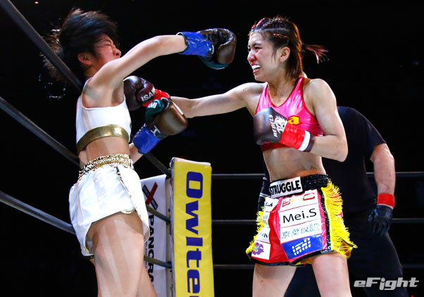 メディアを巻き込んで大きな注目の中、デビュー戦で勝利を飾ったぱんちゃん(右)が2戦目。SAE(左)と対戦