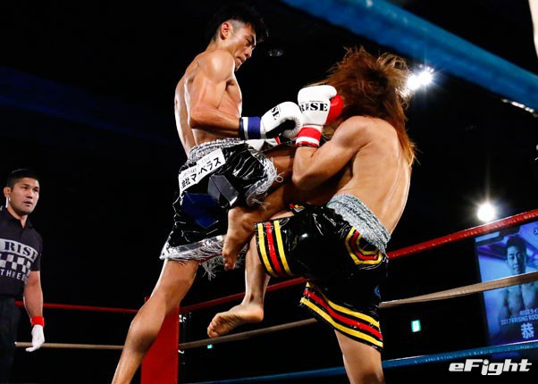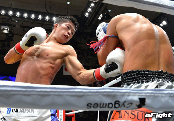 ボディブローでダウンを奪う金子